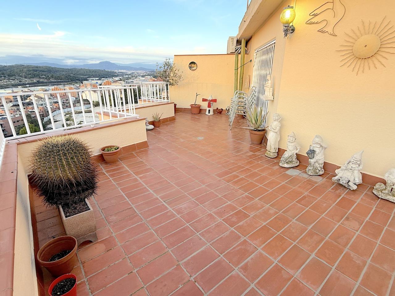 La vivienda está compuesta de 4 habitaciones, 2 de ellas con armario empotrado de 3 y 7 puertas. Un salón-comedor grande de 23m, con pre-instalación de chimenea, y con salida a una fantástica terraza de 70m con vistas a Montserrat desde la que también se accede a través de un dormitorio; en la terraza también se encuentra el lavadero. La cocina es exterior, con los armarios blancos, y está bien conservada. El baño es completo (ducha, váter, bidé y lavabo), da al exterior y está en buen estado.