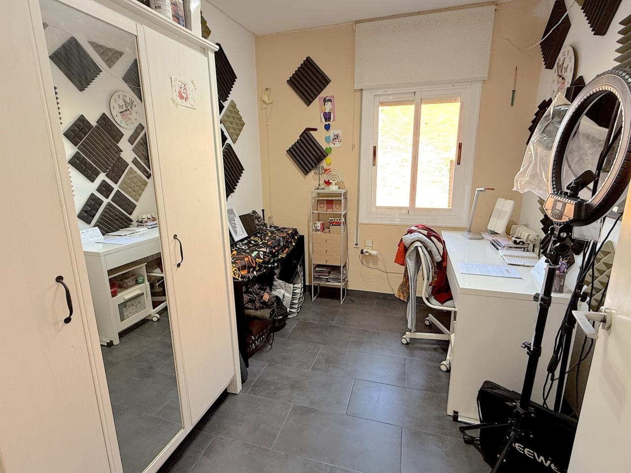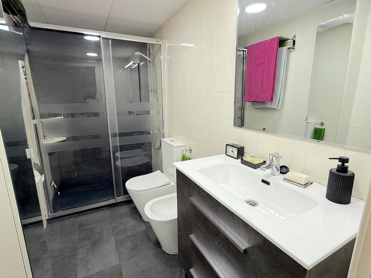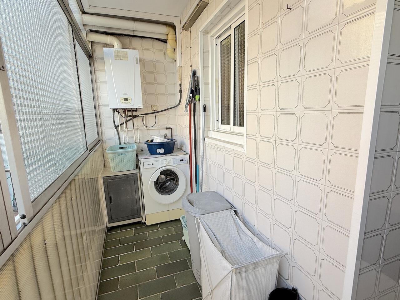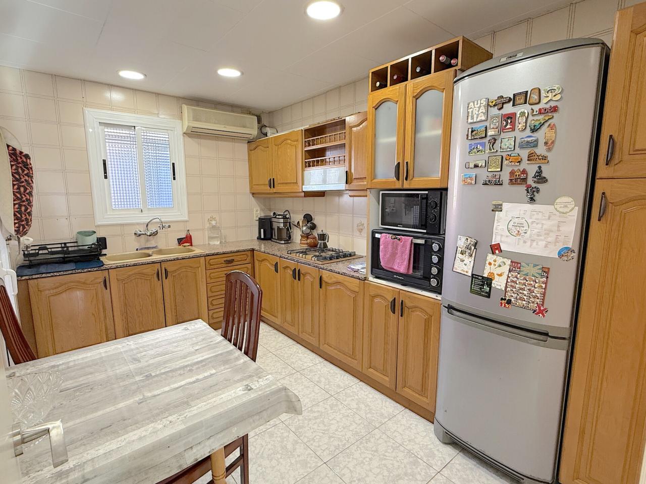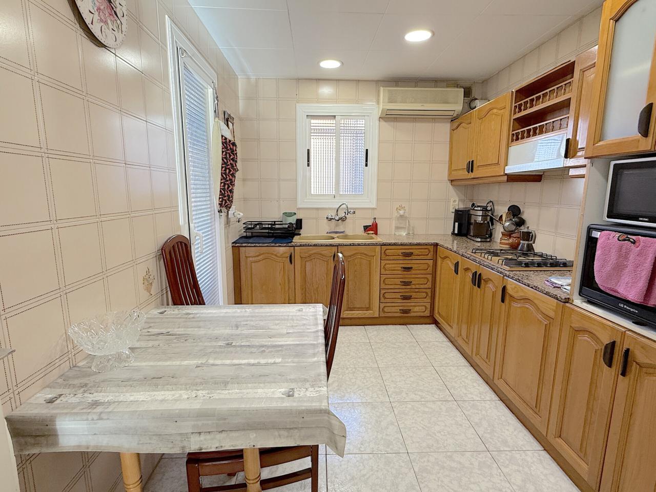 Primer Piso: un amplio salón de 23m con salida a un balcón grande de 6m que caben mesa y sillas. Una cocina cuadrada amplia con mesa con armarios de roble; y una habitación-lavadero muy grande de 10m. Un aseo cortesía con váter y lavabo.