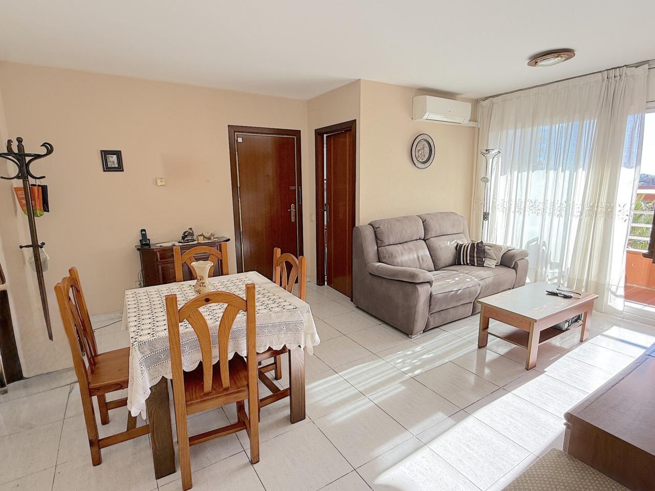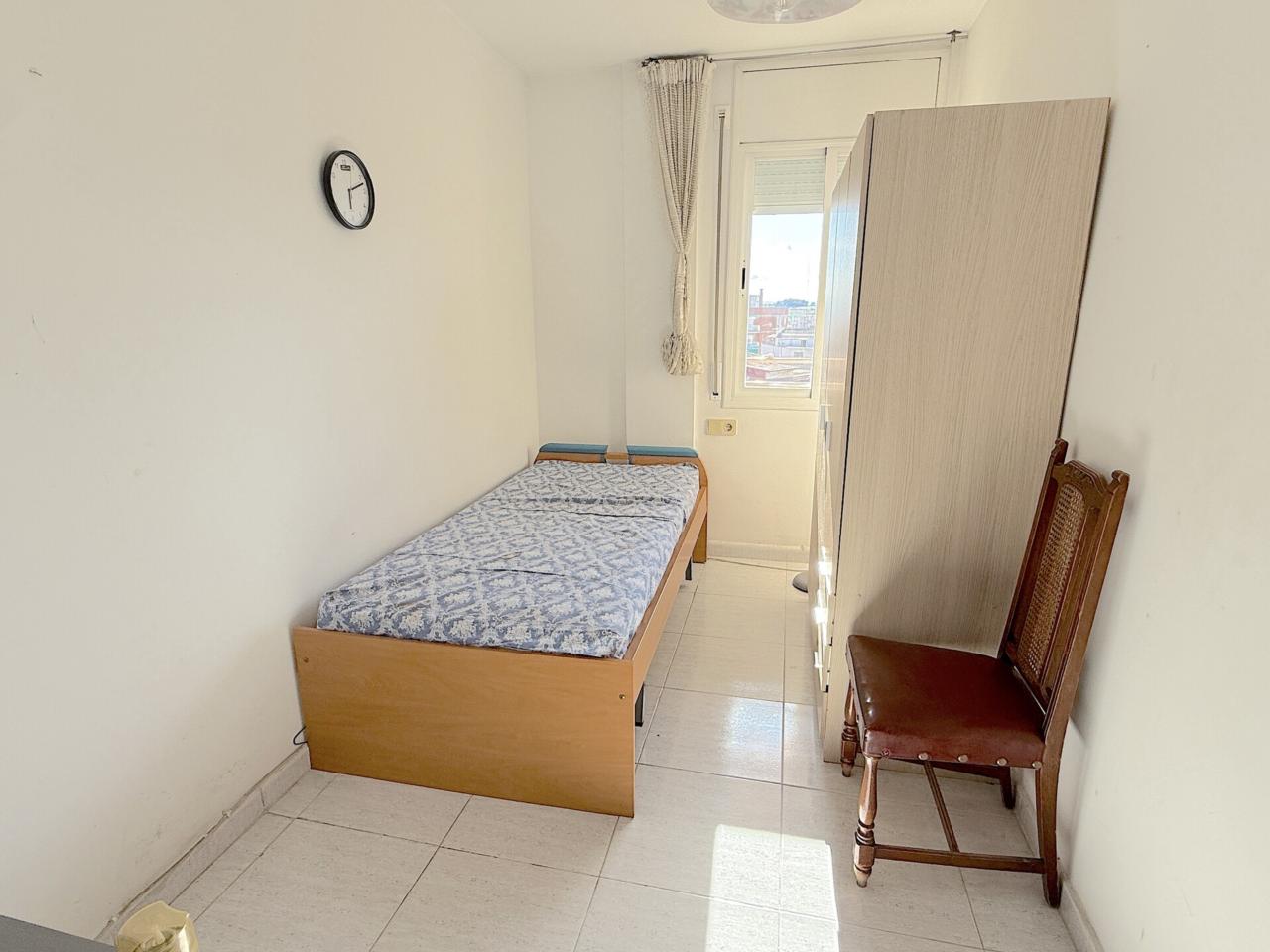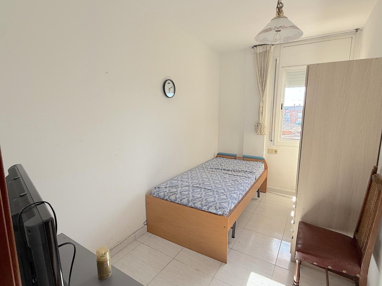 La vivienda está compuesta de 2 habitaciones exteriores (1 doble y 1 individual). El salón-comedor es amplio de 19m y tiene salida a un balcón grande y alargado de 8m. La cocina es exterior y con armarios blancos, está bien conservada y coge una mesa. El lavadero es exterior. Cuenta con un baño completo que está en buen estado (ducha, váter, bidé y lavabo).