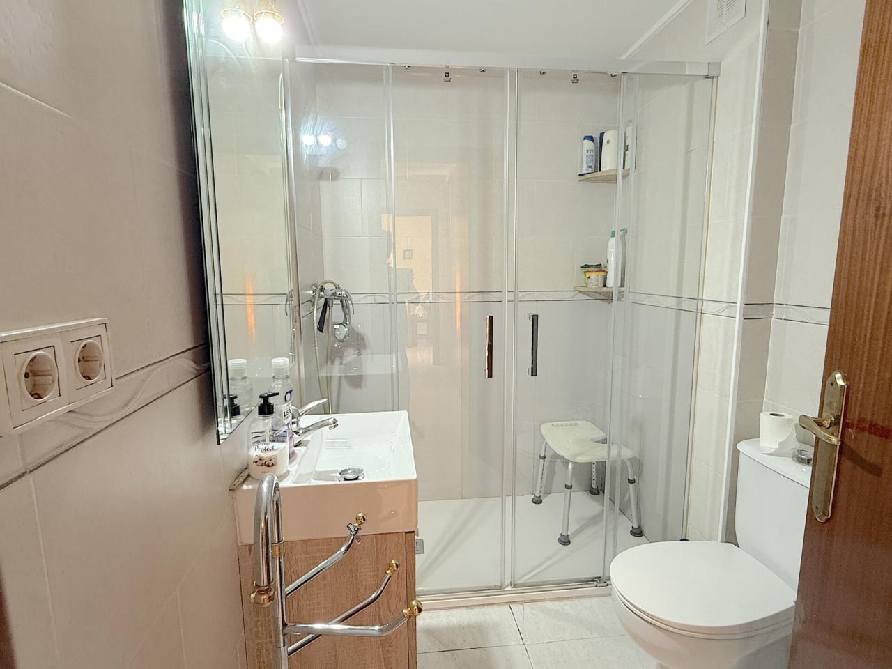 Las ventanas son de aluminio blanco con doble cristal. Las persianas son de aluminio y la del salón es con motor. Las puertas son de embero. Y el suelo es de gres.