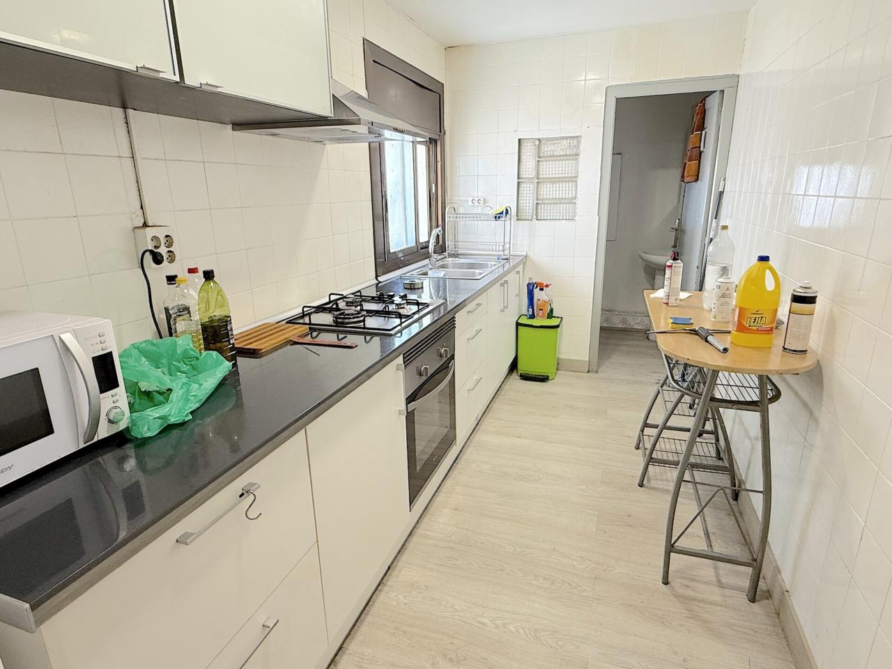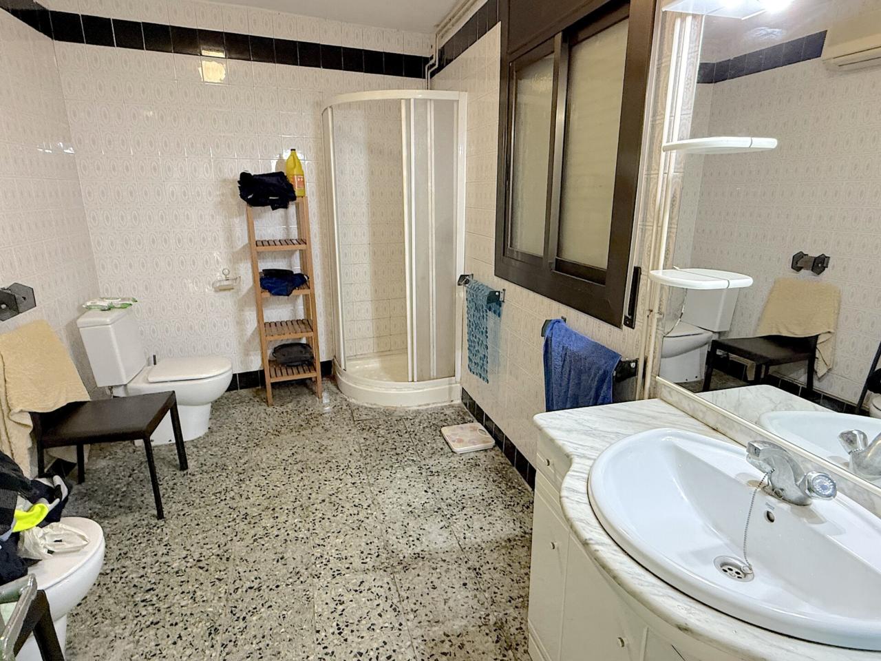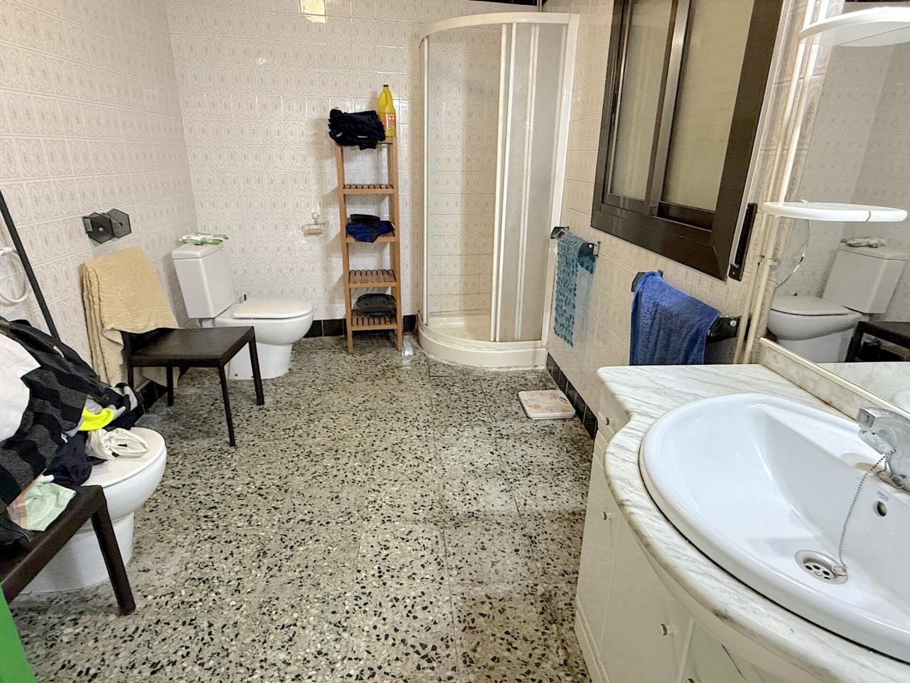 Está compuesta de 3 habitaciones exteriores (1 doble y 2 individuales). Un salón-comedor de 17m con salida a un patio grande de 45m. La cocina es amplia y exterior, los armarios están cambiados de hace 6 años. Un baño de 3 piezas (ducha, váter y lavabo). Y otro baño completo grande (ducha, váter, bidé y lavabo). Tiene un lavadero exterior.