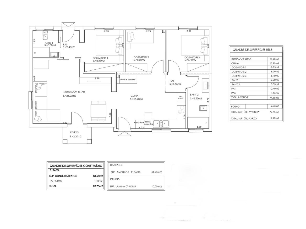 Anexo a la vivienda hay unos módulos habilitados como vivienda y que constan de: 3 hab, salón, cocina y baño.