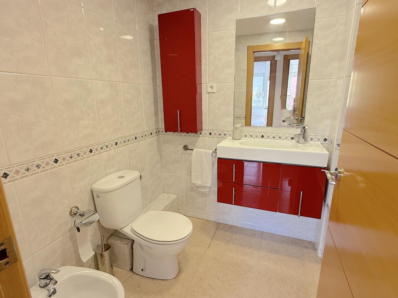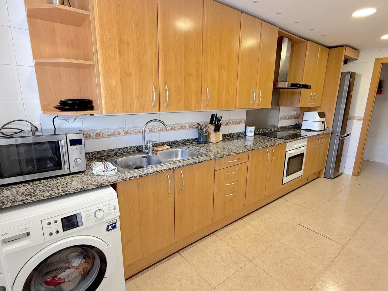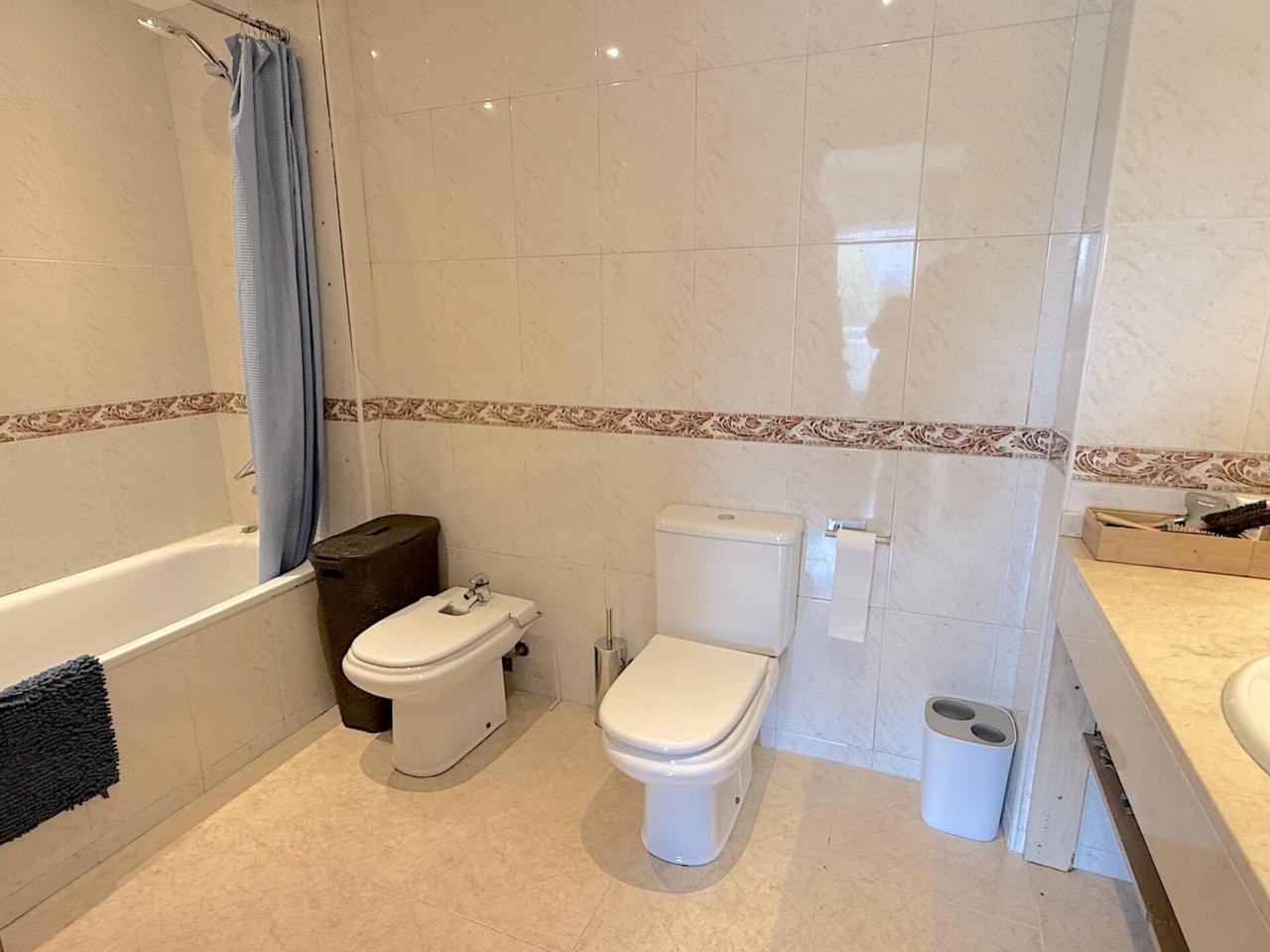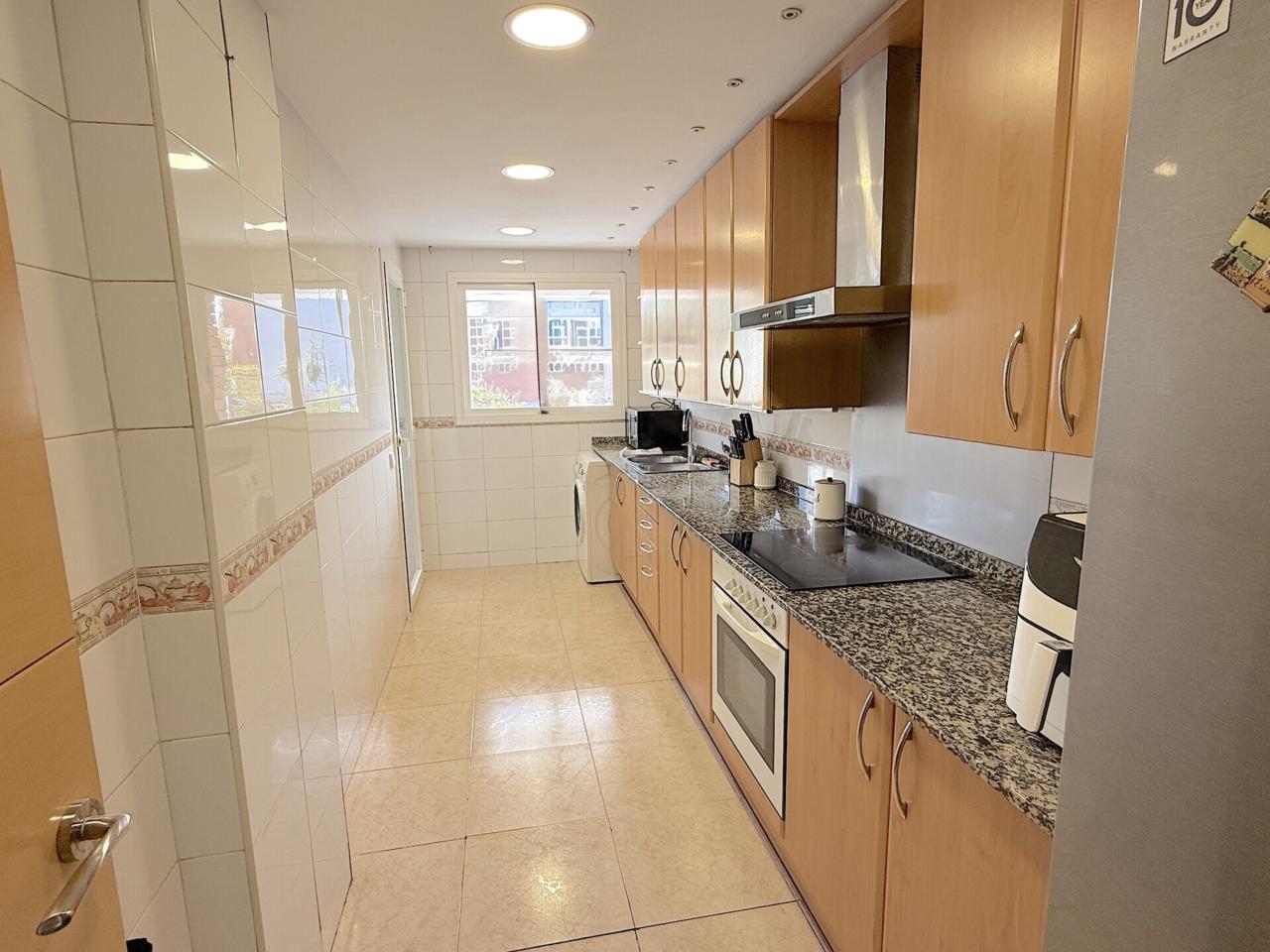 La vivienda se compone de 3 habitaciones exteriores, 2 dobles y 1 individual; la principal con armario empotrado de 3 puertas y un baño en suite completo (con bañera, váter, bidé y lavabo). El salón-comedor es amplio de 23m y tiene salida a un balcón muy grande de 7m. La cocina es espaciosa, con ventana a exterior, y con armarios de madera, está muy bien cuidada. Un lavadero con ventilación exterior. Y otro baño completo (con bañera, váter, bidé y lavabo).