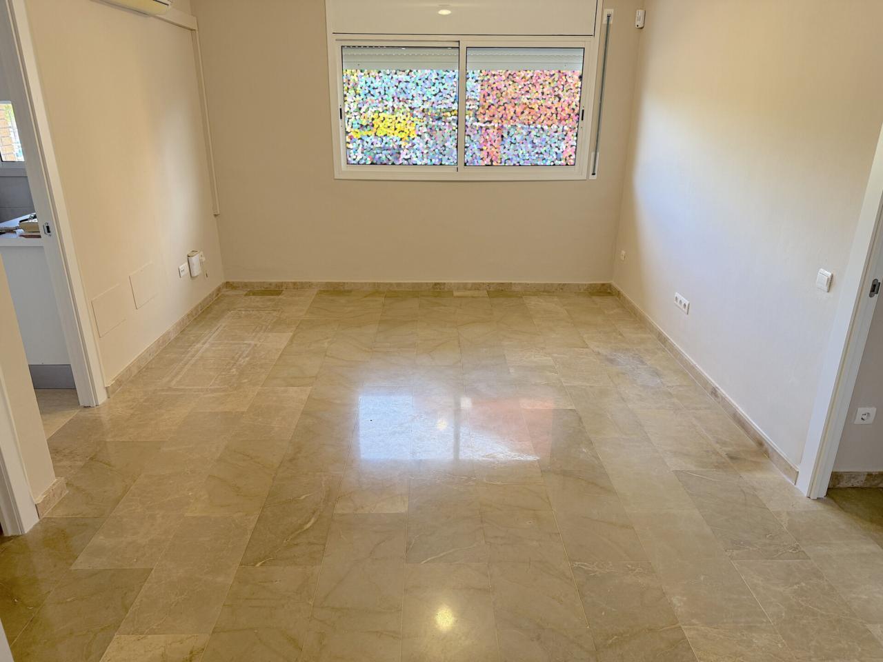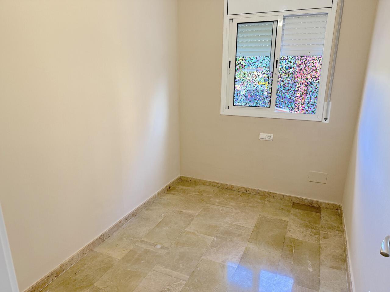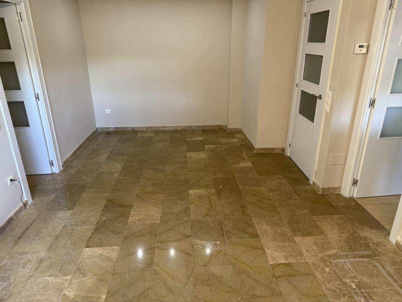 Las ventanas son de aluminio blanco con doble cristal. Las puertas están recién lacadas blancas. Y el suelo es de mármol.